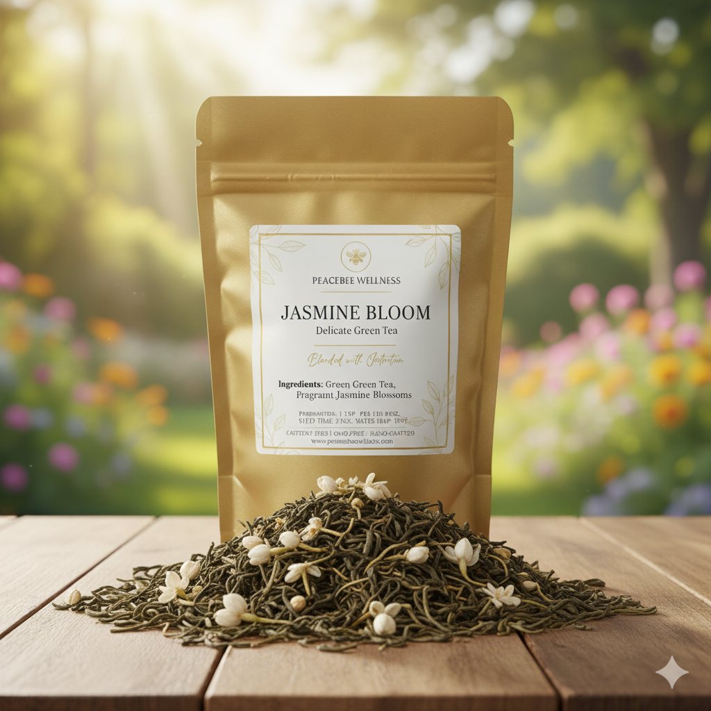 Sip into serenity with Jasmine Bloom, a delicate green tea infused with fragrant jasmine blossoms. Light, floral, and gently uplifting, this blend is your go-to for grounding focus and blooming into calm. Perfect for slow mornings, mid-day resets, or peaceful moments that call for a little extra grace.