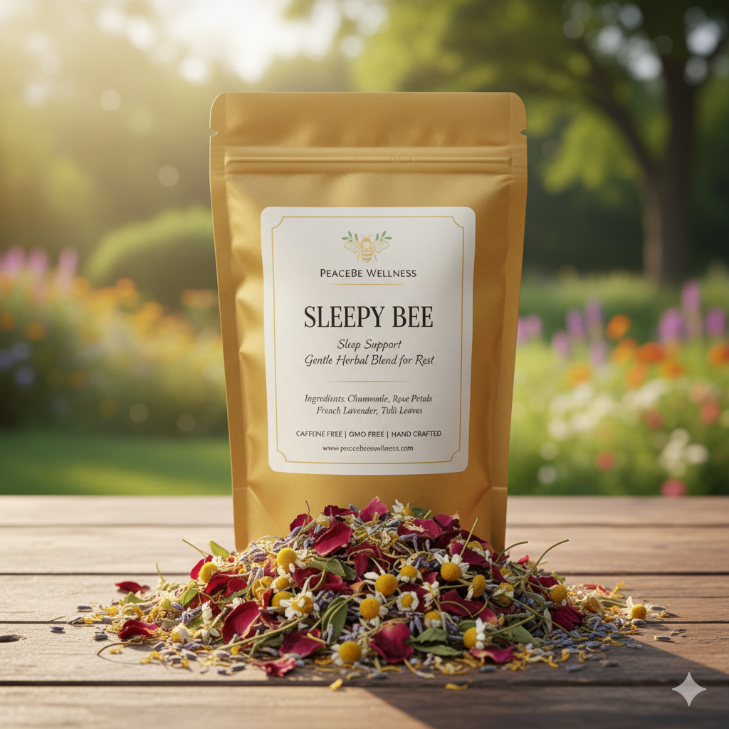 Let your mind unwind and your body soften with Sleepy-Bee, a gentle bedtime blend crafted to lull you into deep, natural rest. This floral, calming infusion is a sweet addition to close your day. Delicate Chamomile flowers mingle with fragrant Rose Petals and calming French Lavender, while Tulsi Leaves add a touch of natural tranquility. Sip this floral, peaceful infusion as your perfect nighttime companion to nurture sweet dreams and serene evenings.